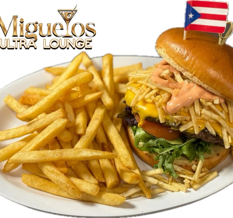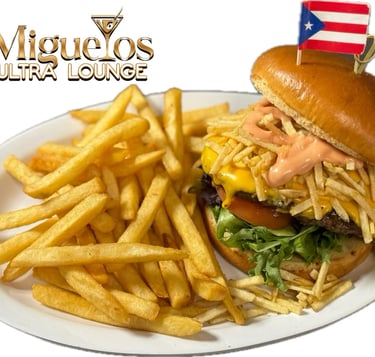 Miguelos Ultra Lounge was born from that mix: a little loud, always flavorful, rooted in Puerto Rican soul and ready to celebrate. From the kitchen to the cocktail list, everything we serve is about joy, spice, and good energy.